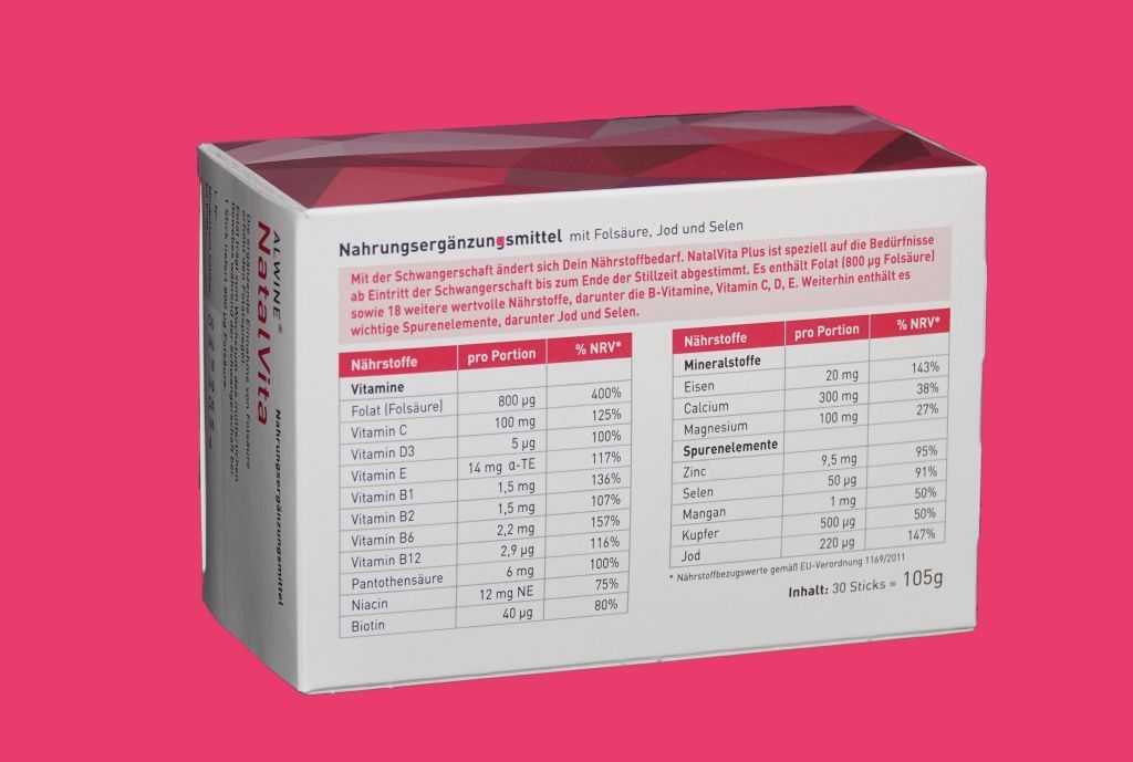 ALWINE NatalVita Plus ist speziell auf die Bedürfnisse ab Eintritt der Schwangerschaft bis zum Ende der Stillzeit abgestimmt. Darüber hinaus wird die Qualität von unabhängigen Laboren regelmäßig geprüft.