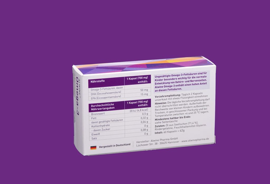 ALWINE Omega-3 ist ein 100% natürliches Produkt. Es wird besonders schonend aus Seefischen hergestellt und enthält einen hohen Anteil an mehrfach ungesättigten Omega-3-Fettsäuren